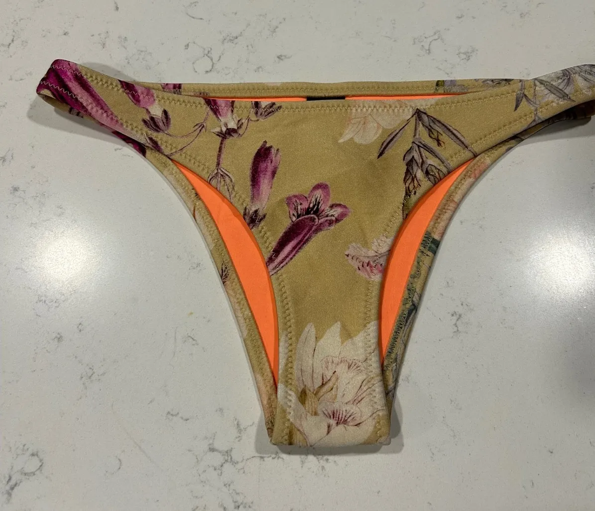 TRIANGL bikini bottoms with a captivating floral print and vibrant neon orange trim. These bottoms o... Show more