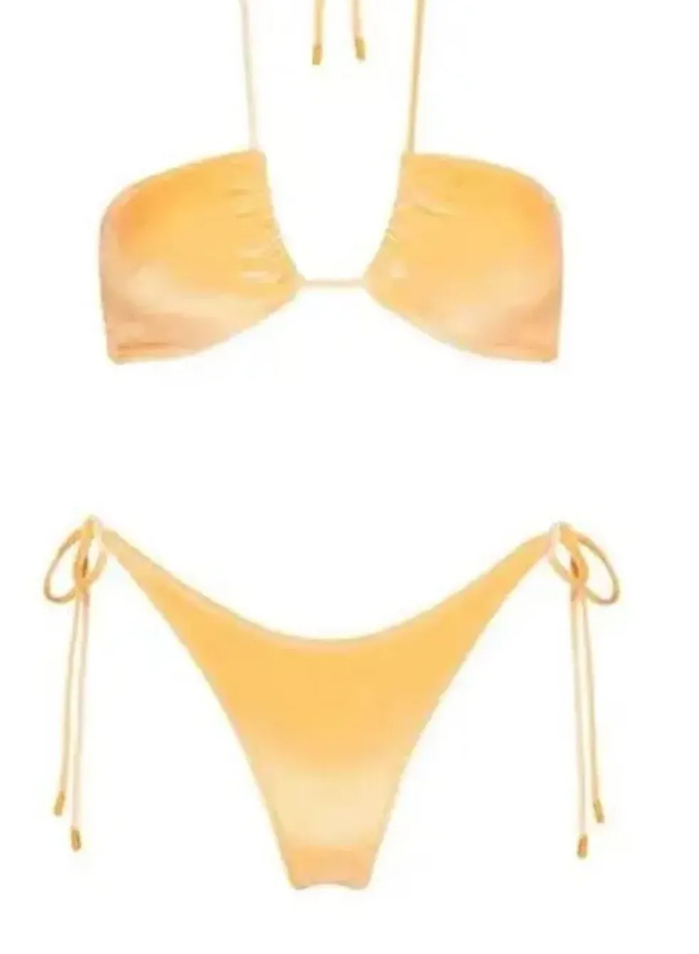 Yellow velvet new without tags triangl bikini small top medium bottoms; matching yellow case