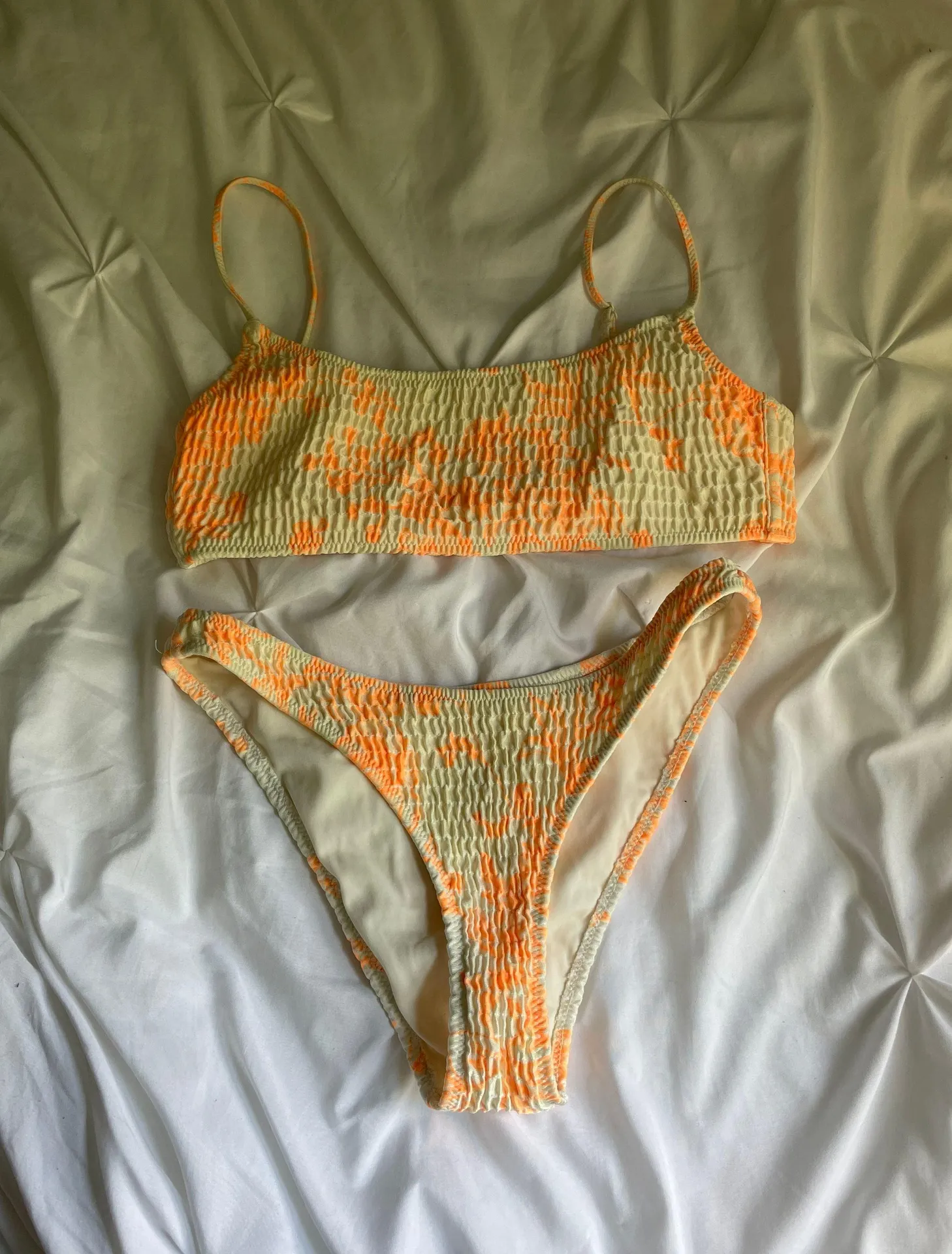 slight discoloration but still in amazing condition top and bottom are both size medium