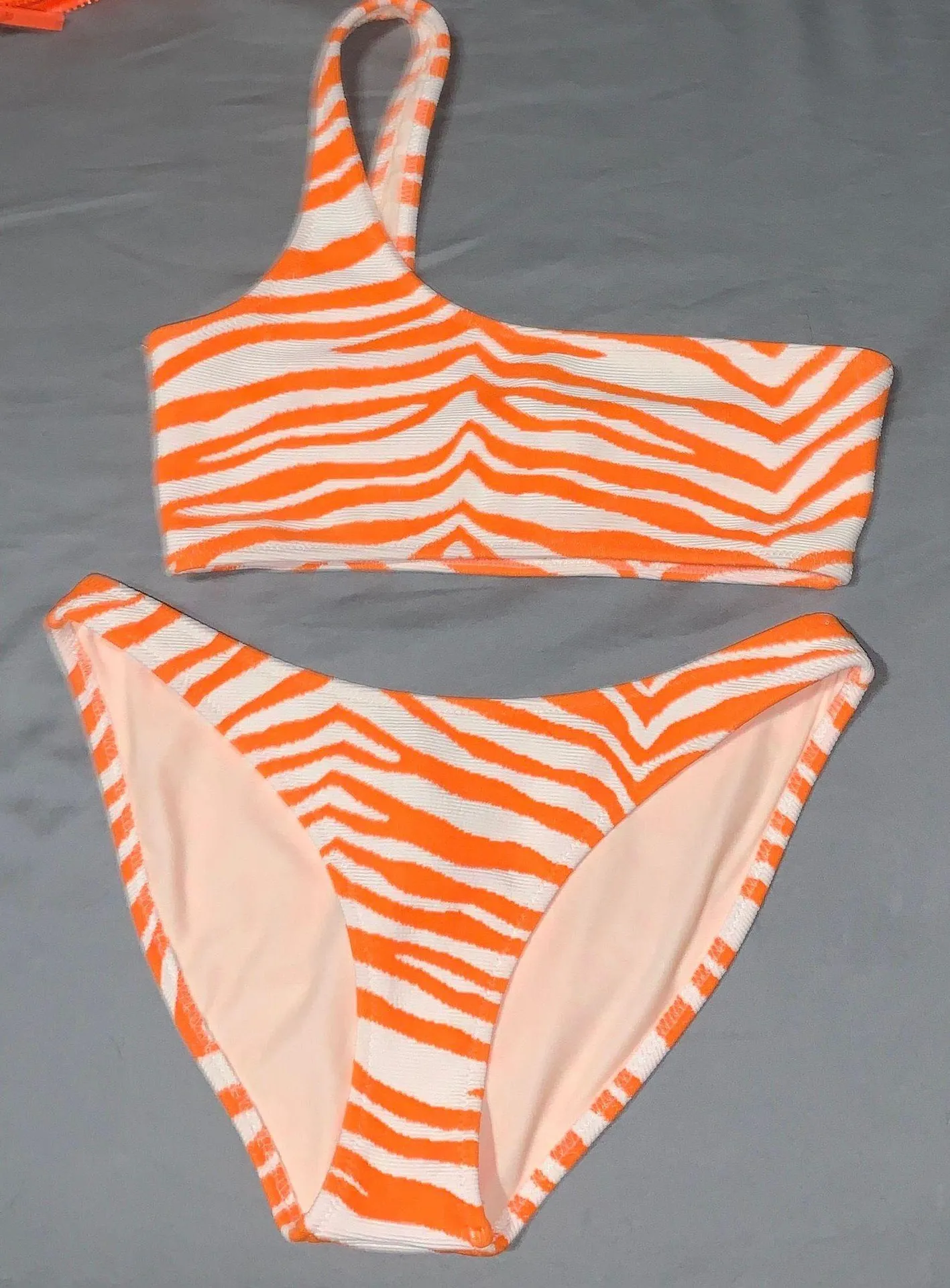 Triangl Zebra Orange One Shoulder Bikini - top is an x small; bottoms are small (normal fit) - no... Show more