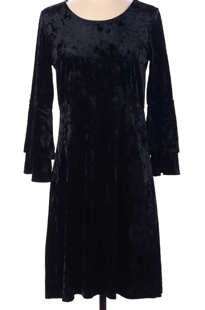 Elevate your wardrobe with this stunning Tribal Femme dress, perfect for any occasion. The black velvet material is accented with a tie and lined for comfort. The dress features a round neckline, 3/4 sleeves, and a pullover closure. The mini dress is perfect for a party or casual outing, and the witchy and grunge themes make it a unique addition to any wardrobe. This dress is available in size XS and is made of a polyester spandex blend. It is recommended to hand wash only to maintain the quality of the dress. The dress is suitable for all seasons, including winter, summer, fall, and spring. Add this dress to your collection and make a statement at your next event.