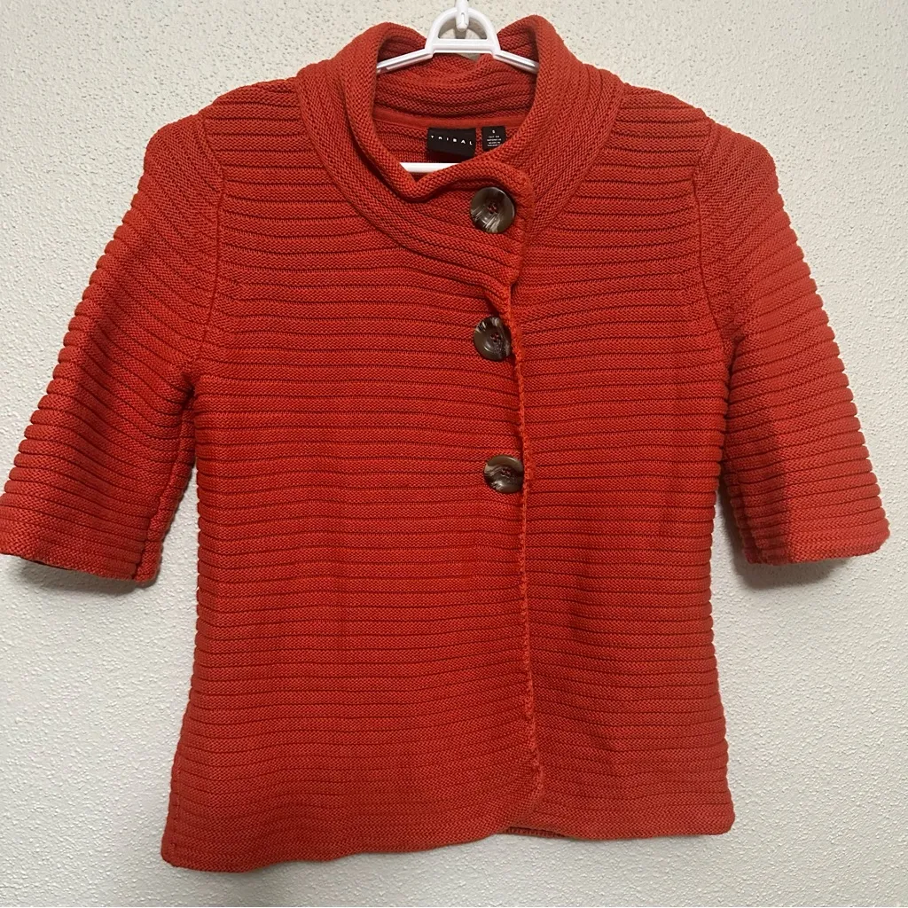 Tribal Women's Orange Cowl Neck Cardigan Sweater Quarter Length Sleeve Red - $32 - From luck x