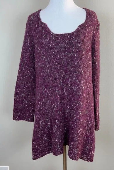 Very good condition! No rips, tears, holes or stains. Pullover Long sleeve Marled knit Open knit Slight shark bite hem Made in France Acrylic, polyamide, wool, mohair blend Underarm to underarm: 21 in Length (shoulder to hem): 30 in