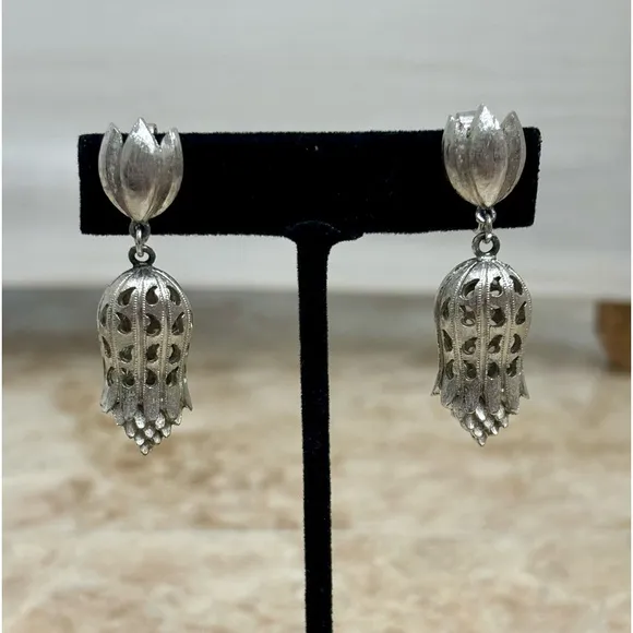 Vintage Signed 70s Rare Silver Tone Swinging Clip On Earrings - $29 - From Michelle