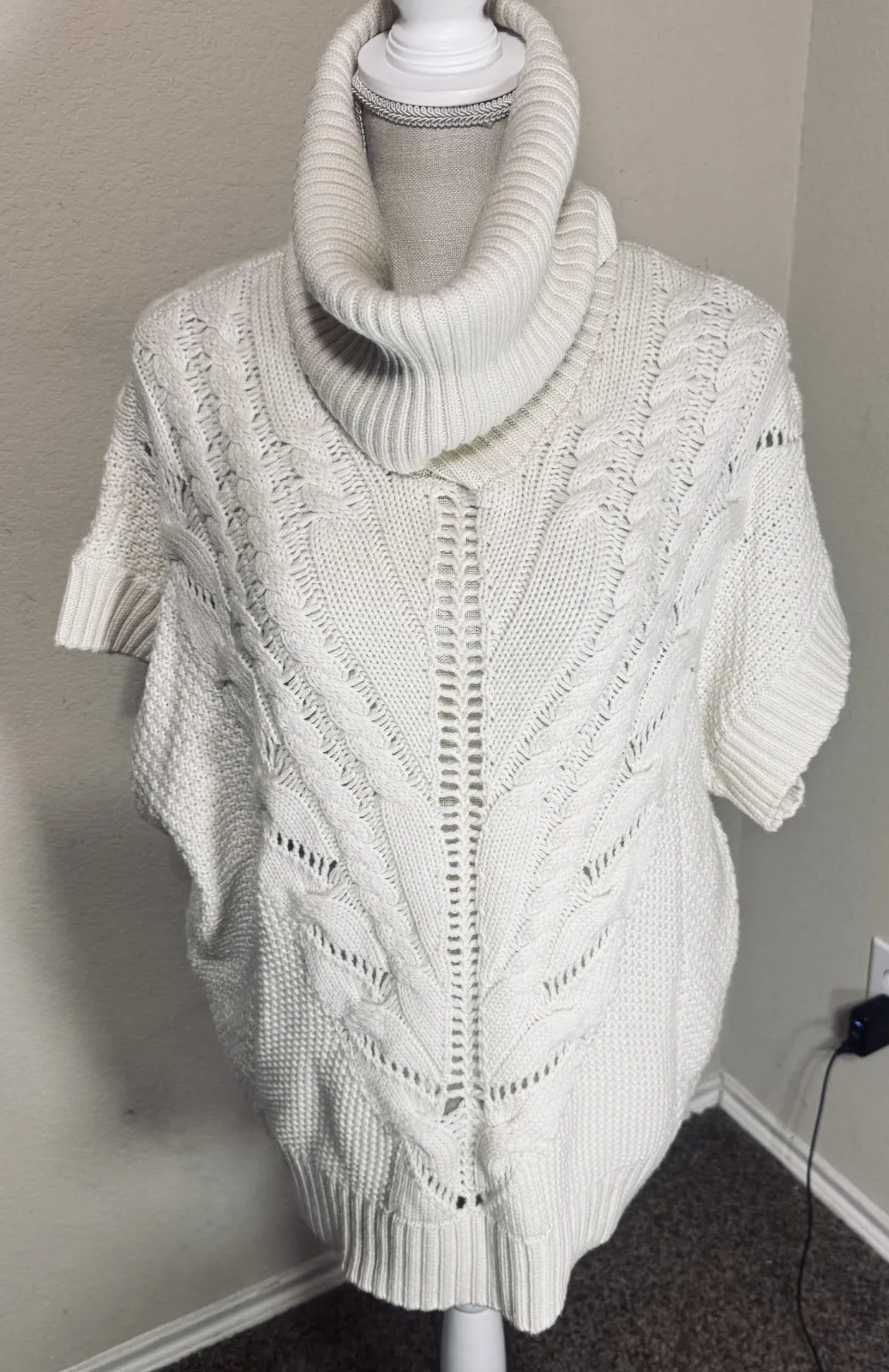 Trina Turk 100% merino wool Cream cowl neck boxy sweater Sz L gently used condition -- no holes or s... Show more