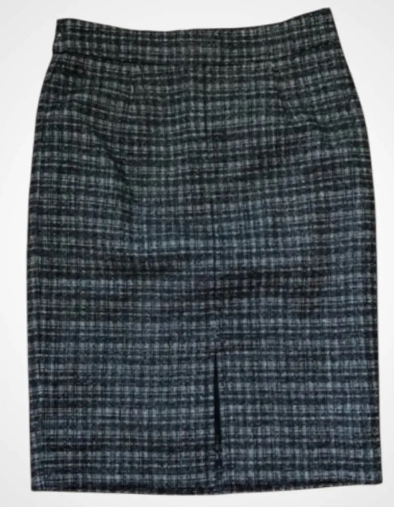 NWT Trina Turk black and white tweed pencil knee length skirt Slit in front Zips on back Lined mea... Show more