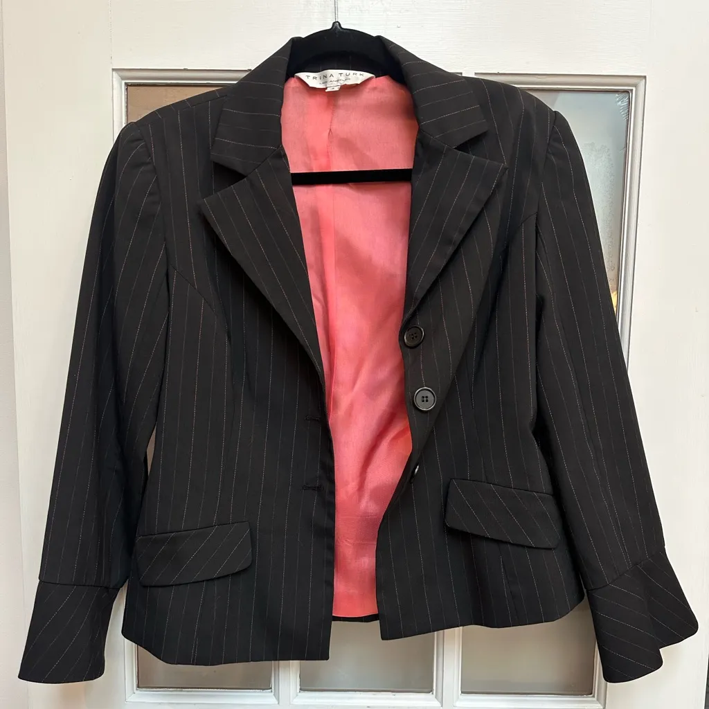 Elevate your style with this chic black pinstripe blazer. Perfect for any occasion, it features a cl... Show more