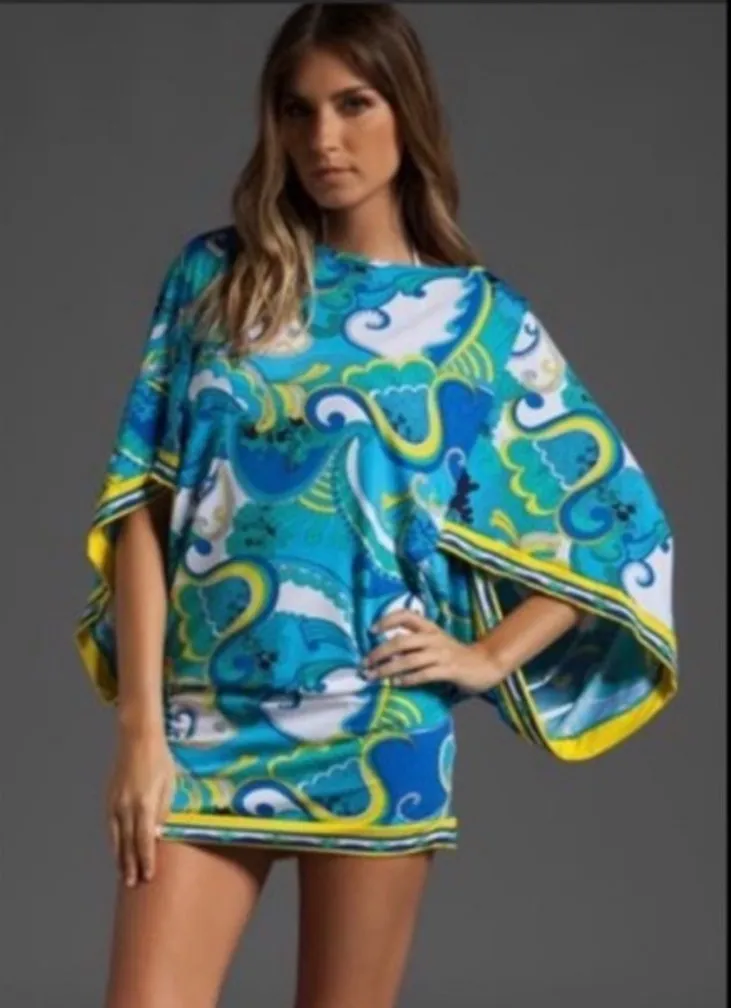 Trina Turk Gorgeous Blue Waves French Riviera Paisley Swim Cover-Up Tunic Dress Size: XS Condition... Show more