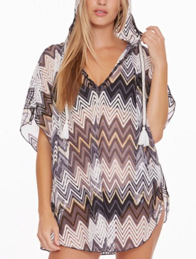 Excellent used condition. Trina Turk Drift crochet hooded poncho cover up. Hits at thigh. V-neck wi... Show more