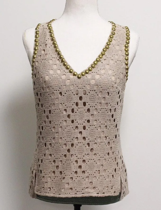 Brand: Trina Turk Size: Small Style: Light Taupe lace cut design sleeveless top. Gold tone rivets al... Show more