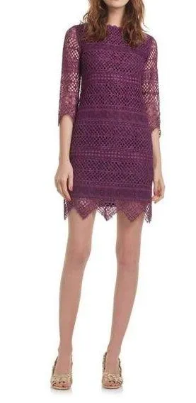 Trina Turk Geddes Blackbird Stripe Lace Dress in Plum - it's a size 2 and is NWT. Be a sight to beh... Show more