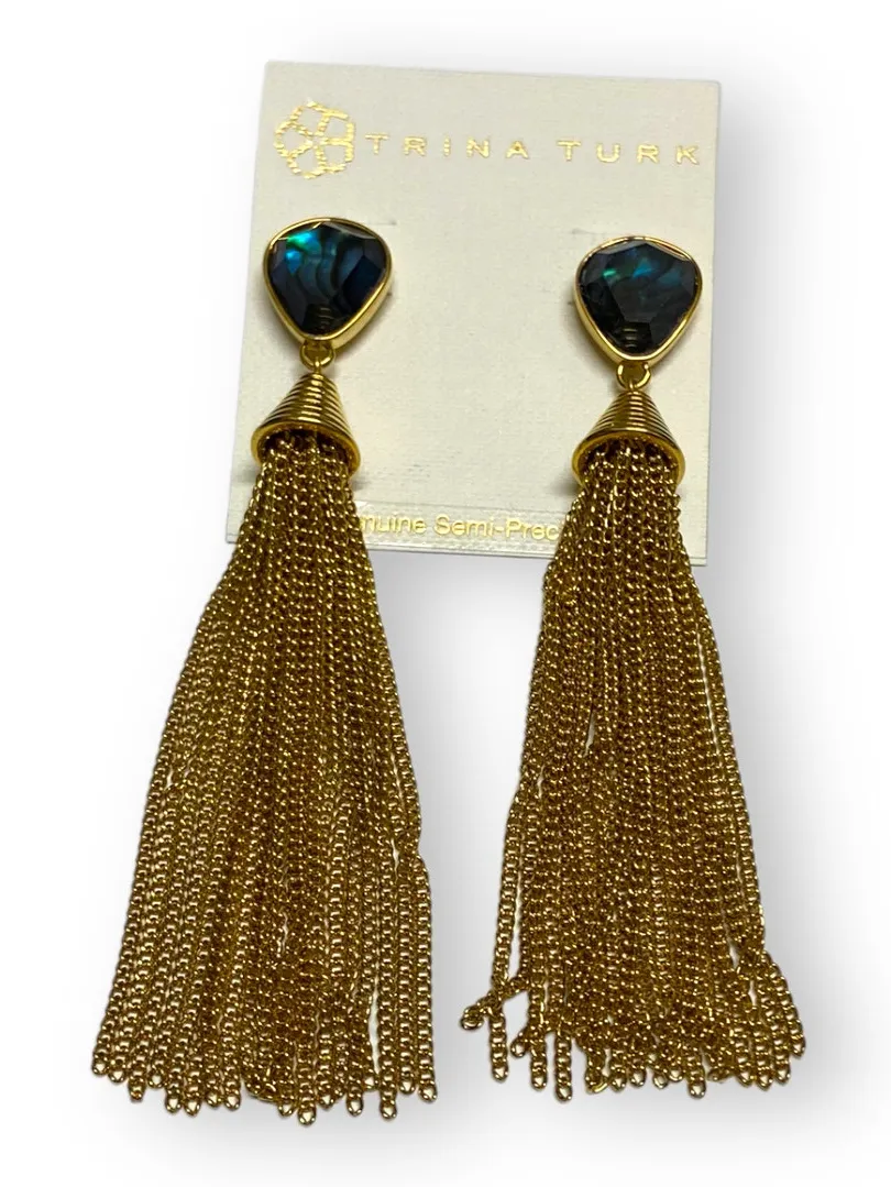 Trina Turk Womens Earrings Gold Tone Tassel Semi Precious Stones Pierced NEW GENERALLY SHIP SAME OR... Show more