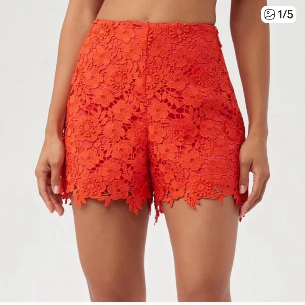 Trina Turk shorts Size 4 In excellent used condition Reef Red dark orange color High waisted Lace... Show more