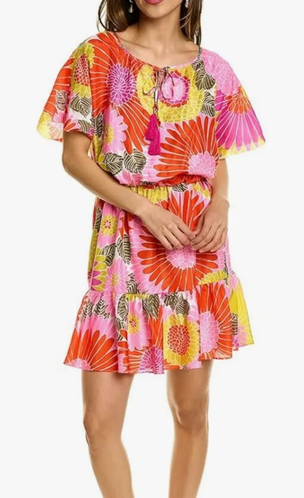 Trina Turk silk mahalo short sleeve dress Lined Tassel ties at neck Measurements approximate Excelle... Show more
