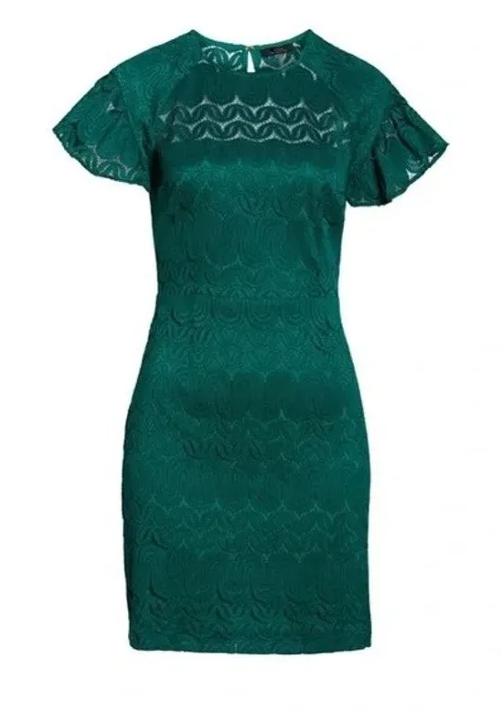 New with tags, perfect condition. MSRP: $158 Wavy lace pattern Jewel neck Back zipper Flutter ruffl... Show more