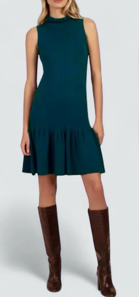 TRINA TURK Raya Merino Wool Ruffle Sleeveless Drop Hem Dress in Teal Blue/Green Size Medium The Ray... Show more