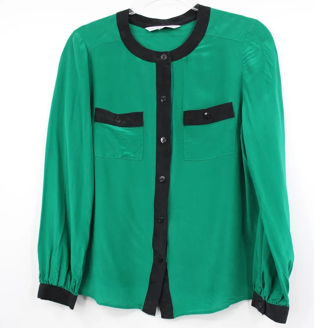 Trina Turk Silk Shirt Womens Colorblock Button Down Collar Shirt Green Size M Brand: Trina Turk S... Show more
