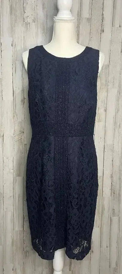 Trina Turk Women's Size 10 Navy Blue Sleeveless Lace Sheath Dress Short All orders ship next busine... Show more