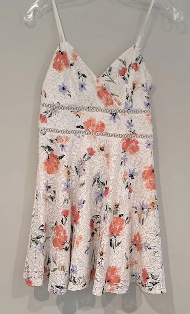 Trixxi Lace Floral Cut Out Back Zip Lined Mini Dress Women's Small White Peach. This adorable dress... Show more