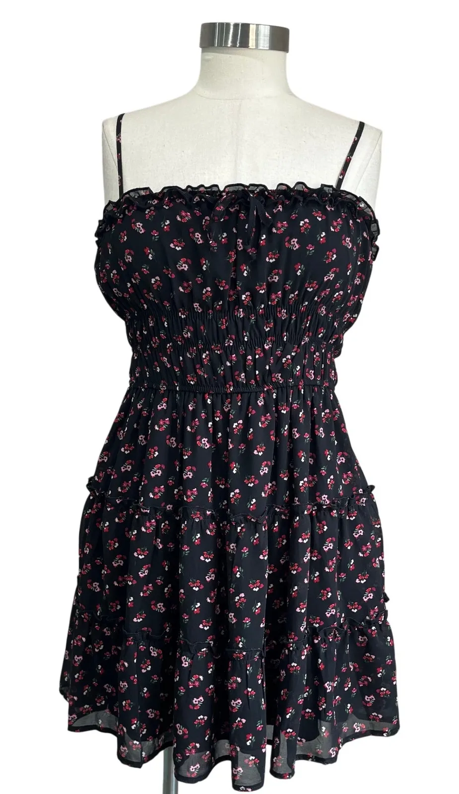 Adorable Trixxi mini dress featuring a milkmaid neckline, smocked bodice, floral print, and ruffled... Show more