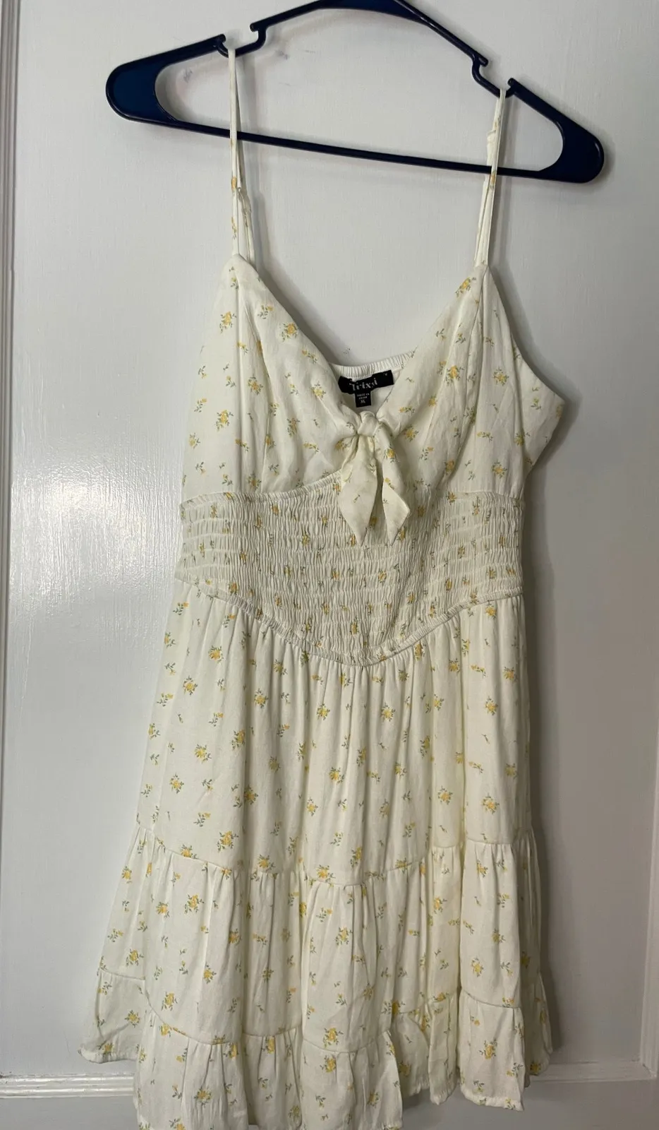 Pit to pit 17" Waist measured flat 14" Hips approx 18" Length 33" Style: Sundress, Mini, A-Line Dre... Show more