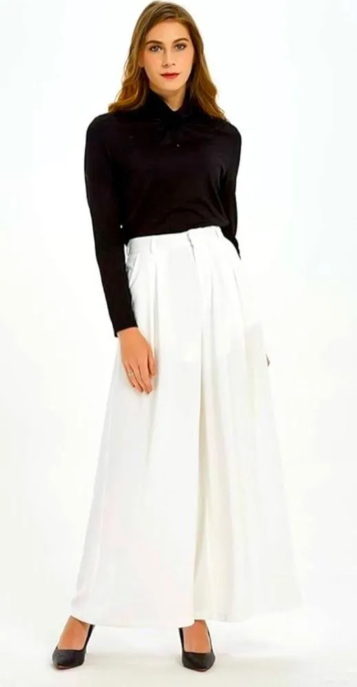 Tronjori NWT Women High Waist Casual Wide Leg Palazzo Pants Trousers (S, Ivory White Short) Brand n... Show more