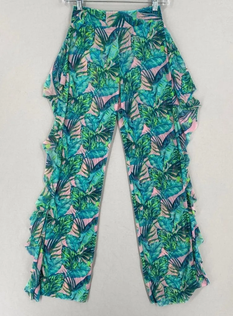 Tropical Print Women Swim Coverup Pants‎ Stretchy Sheer L Green Size L - $11 - From Kimberly