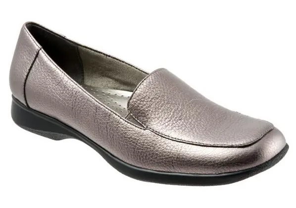 Go to work or go shopping, the Jenn will get you there in total comfort. The soft tumbled leather and shock resistant polyurethane unit bottom will treat your feet like a day at the spa. Lightweight polyurethane unit sole Leather upper Cushioned polyurethane footbed Elastic goring on both sides 1" Heel height Tricot fabric upper lining Keywords: Trotters Shoes, Women's Loafers, Metallic Silver Shoes, Leather Slip On Shoes, Comfort Loafers, Square Toe Shoes, Dress Shoes, Casual Shoes, Women Size 8.5N Trotters Comfort, Fashionable Loafers, Everyday Shoes, Office Shoes, Elegant Shoes