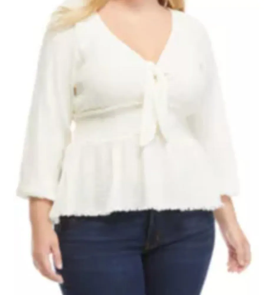 TRUE CRAFT Plus Size Smock Waist Peasant Top. Bow Tie Detail Blouse Size 2X New with Tags Pullover V... Show more