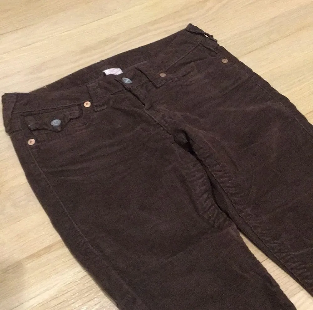 Check out these amazing True Religion Joey Big T Brown Velvet Skinny Flare pants! These rare and exc... Show more