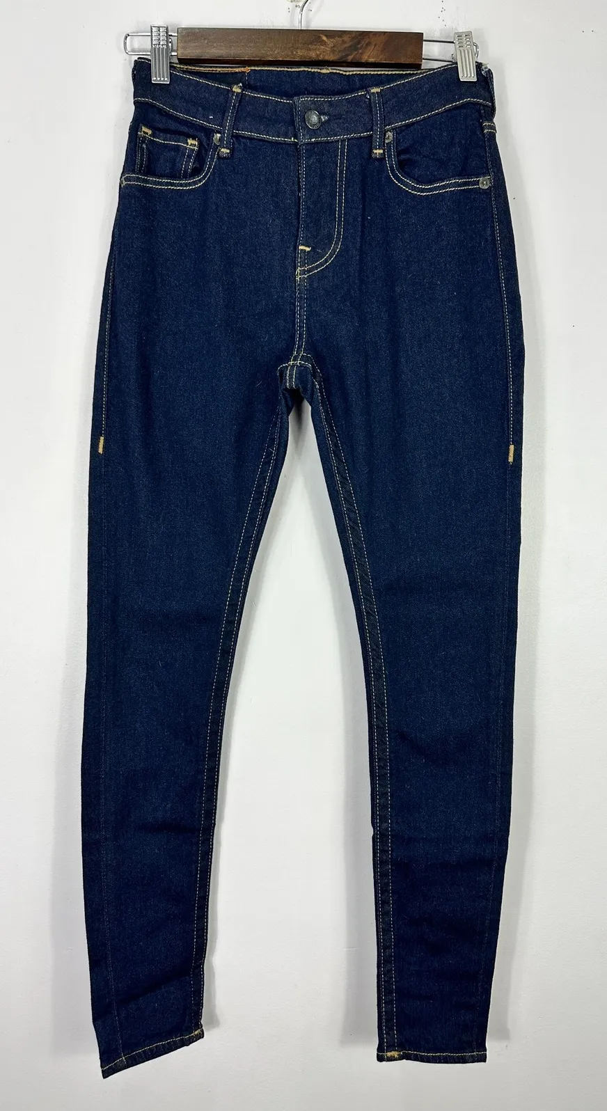 Details: • Size: 24 • Style: High Rise Jennie • Dark wash • Skinny leg • Stretch denim • Zip fly wit... Show more
