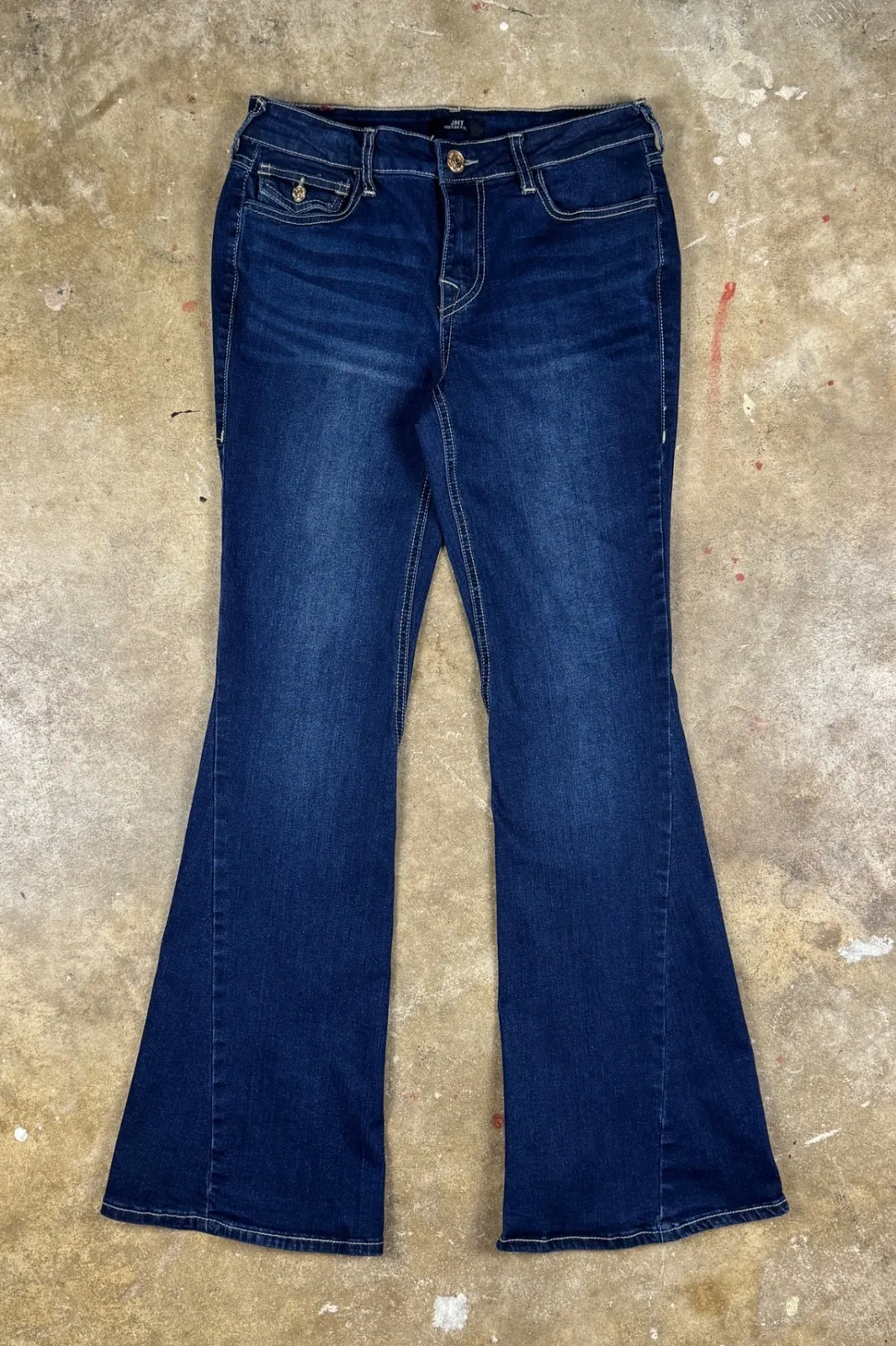 A clean pair of Joey mid-rise flares with the signature contrast stitching and flap pockets that Tru... Show more