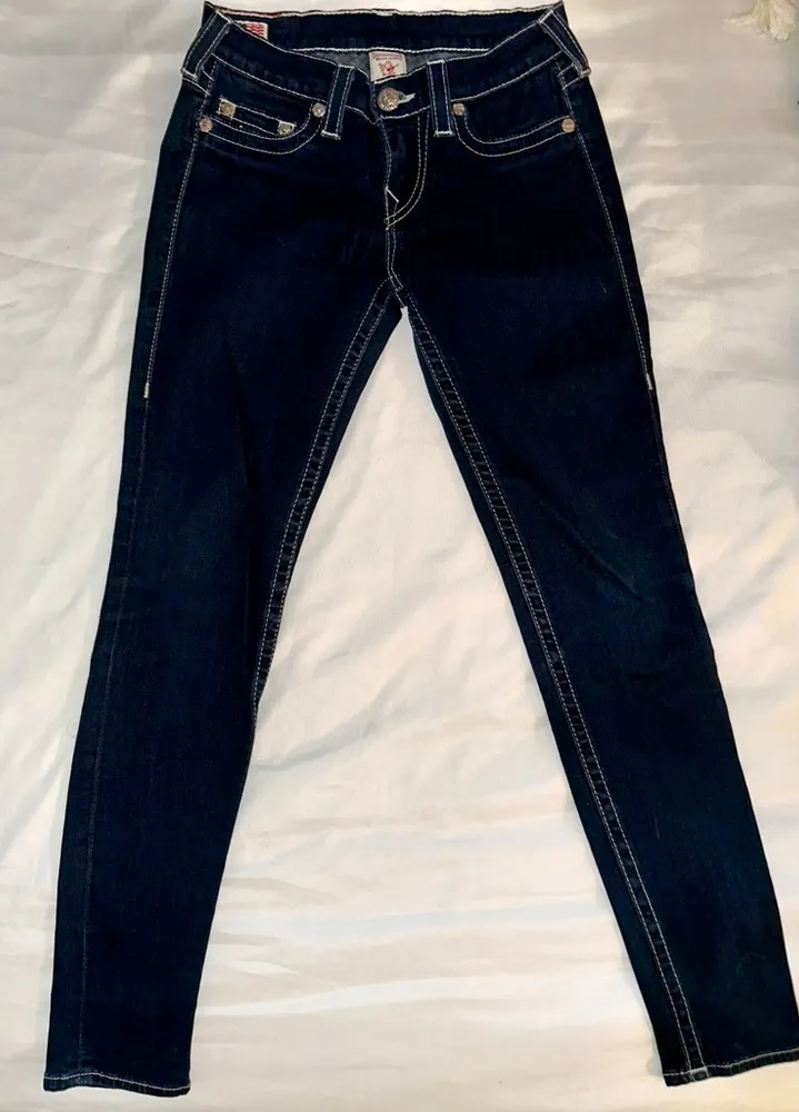 Vintage Y2K True Religion jeans in excellent condition. Classic dark wash denim with signature white... Show more