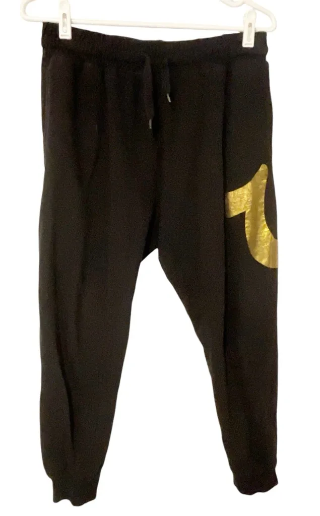 True Religion Medium Heather Black Gold Logo Jogger Pants Loungewear Sweatpants Size Medium Pre Owne... Show more