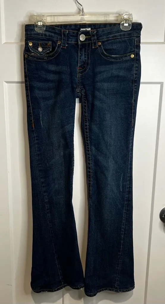 The True Religion Rainbow Joey Flared Jeans Twist Stitch in size 28 are a stylish and trendy piece f... Show more