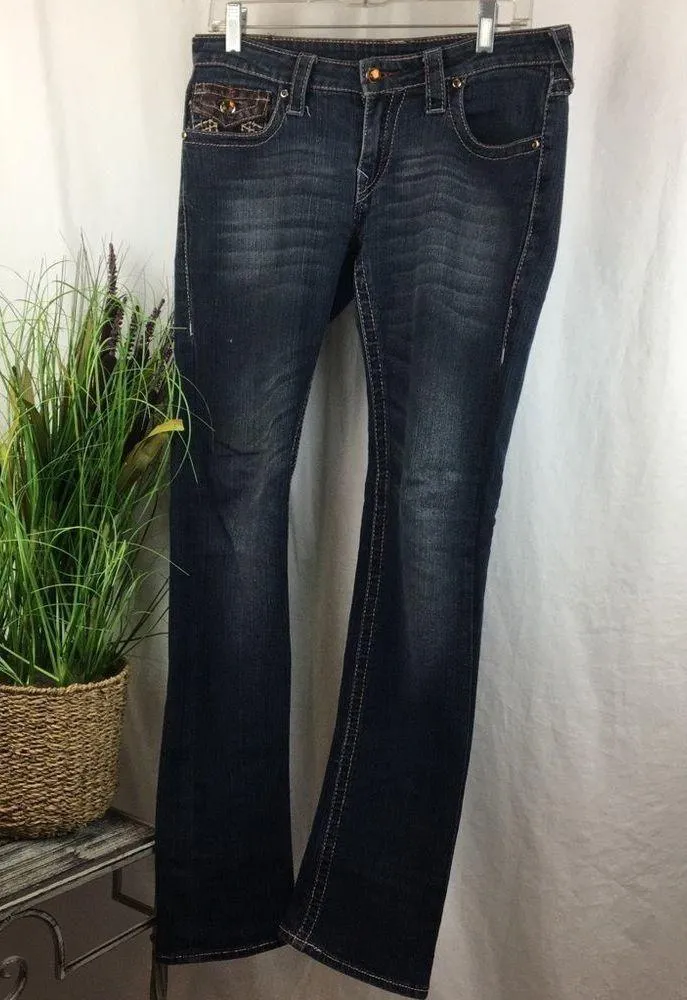 Very good pre owned See photos...a few loose threads & cracked pleather patches Straight Leg Ricky... Show more