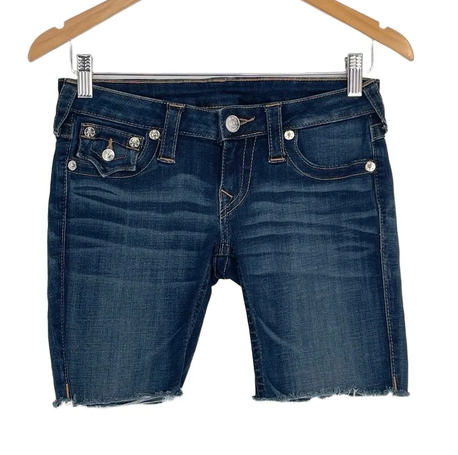 Jeans and denim shorts from the Los Angeles-based premium denim brand True Religion are instantly recognizable thanks to their horseshoe pocket design, rhinestone embellishments, specialty washes, and contrast stitching.