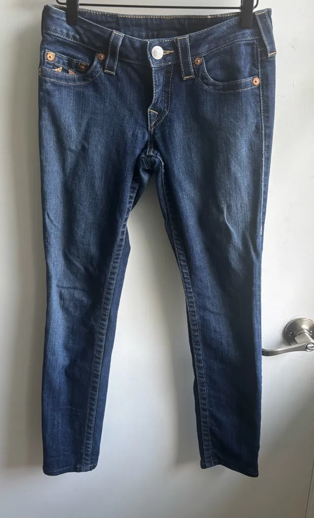 True Religion World Tour Y2K Low Rise Skinny Jeans in dark wash. Size 27. Excellent used condition