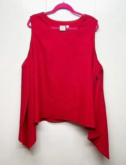 Truth & Style women's red top. Round neck. Sleeveless. Shark bite hem. Lined. Has a few spots, pleas... Show more