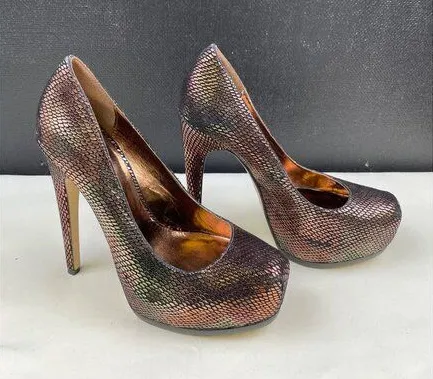 Elevate your style with Truth or Dare By Madonna Women's Metallic Shoes. These size 5.75" heels deliver a bold statement to any outfit. Please view last 2 photos small scuffs on inner shoe This item has been cleaned, sanitized and deodorized. Features: • Heels Size: Womens 7 Condition: Pre-Owned Good
