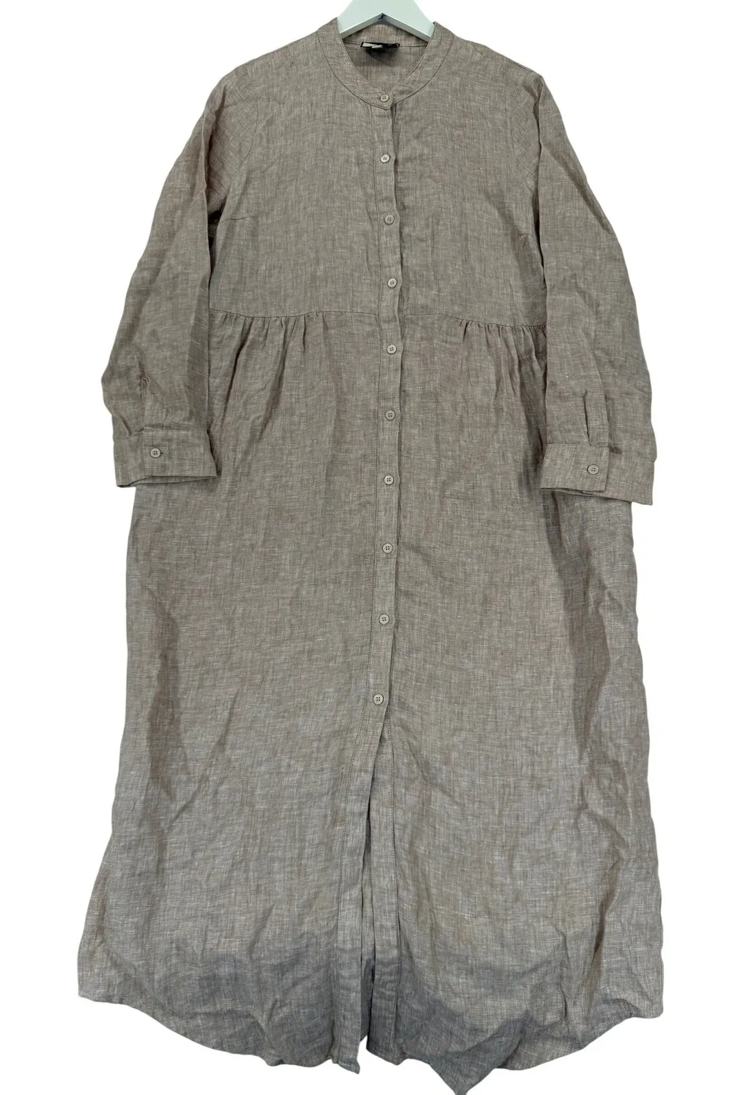 Style: Shirt Dress, Maxi Dress Length: Long Department: Women Sleeve Length: Long Sleeve Pattern: Solid Occasion: Casual Material: 100% Hemp, Linen Fabric Type: Woven Neckline: Collared Season: Spring, Summer, Fall Sleeve Type: Raglan Sleeve Closure: Button Accents: Button Features: Pockets, Collared Keywords: hemp dress, button front, long sleeve dress, neutral, natural fiber, linen blend, casual dress, midi dress, resort wear, summer dress, lightweight, button up, tan dress, lagenlook, granola, closet staple, capsule wardrobe, classic Thank you for viewing my listing! Please see the photos for a detailed look at its CONDITION and MEASUREMENTS. Feel free to reach out with any questions.