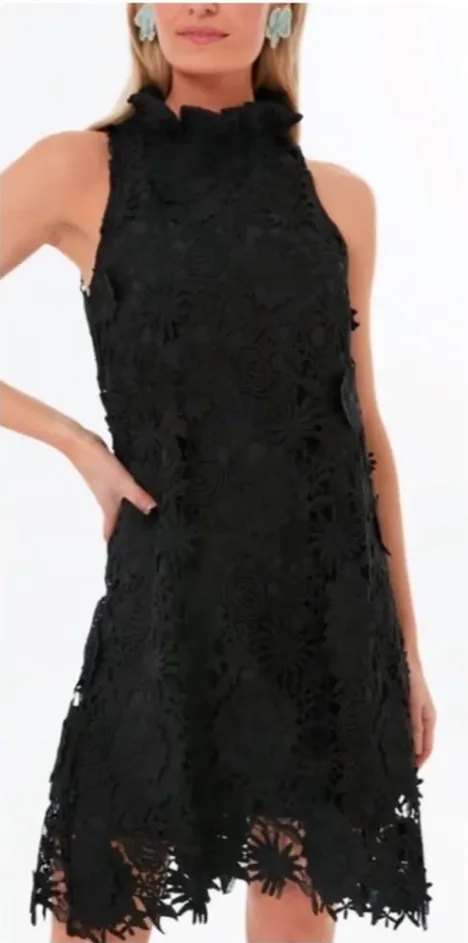 Tuckernuck Guipure Lace Blythe Dress bow mini sleeveless black tie ruffle neck Size XS - $135 - From Filo