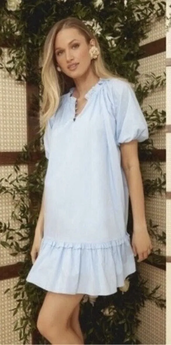 Tuckernuck Hyacinth House Light Blue Mini‎ Gwyn Dress Puff Sleeve Large L - $50 - From Kate