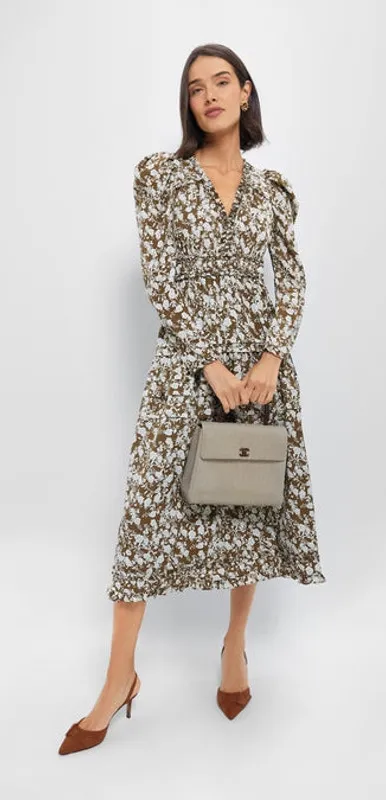 HYACINTH HOUSE Olive Floral Renee Ruffle Midi Dress Size XS - $145 - From Andrea