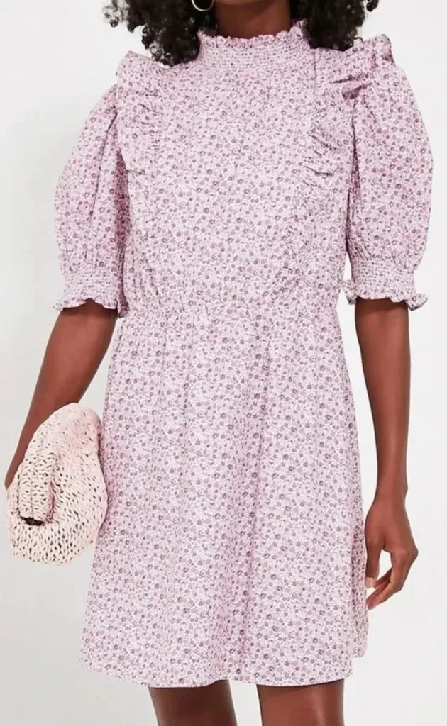 This beautiful mini dress from Hyacinth House features a stunning floral pattern in shades of purple, periwinkle, and white. The dress has a gathered neckline and puff sleeves with ruffle accents for a feminine and playful look. The elastic waist and zipper closure ensure a comfortable and secure fit. Perfect for any occasion, this dress can be dressed up or down, making it a versatile addition to your wardrobe. Wear it to a wedding, party, or even as a casual outfit for a day out. The dress is made of a soft and breathable blend of polyester and cotton, with 100% cotton lining for added comfort. Chest: 18” Waist: 15.5” Length: 34” Great used condition - no flaws or signs of wear