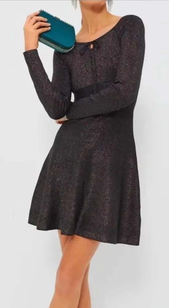 Description: cocktail-ready, stretchy comfort, and event season favorite Add a touch of glam to your wardrobe with the Hyacinth House Selena Knit Dress in shimmering black. This figure-flattering piece features a soft sparkle throughout, long sleeves, and a playful keyhole neckline. The fit-and-flare silhouette gives it movement and versatility—Stretchy shimmer fabric makes this dress comfy yet elegant. Ideal for cocktail events, parties, or dinner dates. Details: •. Condition: New with tags (NWT) • Brand: Hyacinth House • Style: Selena Knit Dress • Size: X-Small • Color: Black shimmer • Keyhole front with tie detail • Long sleeves • Fit-and-flare silhouette • Material: 59% Viscose, 23% Nylon, 13% Polyester, 5% Metallic • Care: Hand wash cold, do not bleach or tumble dry, iron low • Style# MM105D • Retail Price: $158 Disclaimer: Our pics show accurate color, but might vary slightly. Please see all pictures for more details and measurements as part of the listing description. Orders are packaged with care, from a smoke-free home. Orders typically ship in 1–2 business days. On-model images are for general reference only (please refer to actual photos and measurements). SKU: 2223