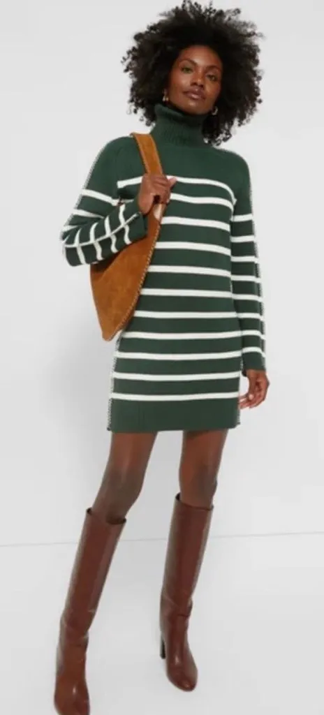 Tuckernuck Hyacinth House Striped Emsley Mini Sweater Dress Pine Green & White Size XXL A mod-mini... Show more