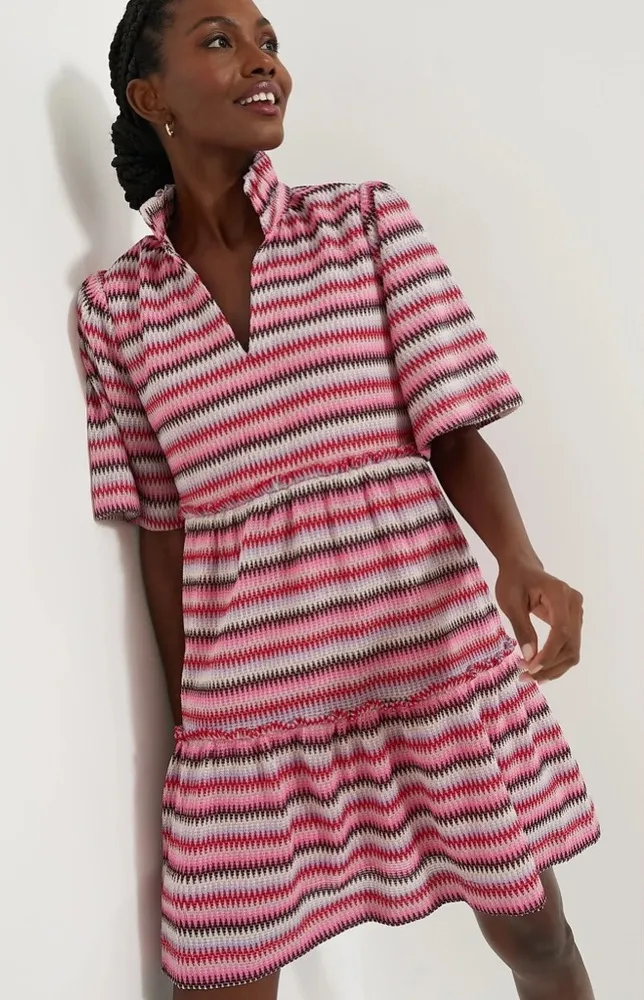 💖 Description: Brand new with tags! This Tuckernuck tiered mini dress in a vibrant zigzag print is... Show more