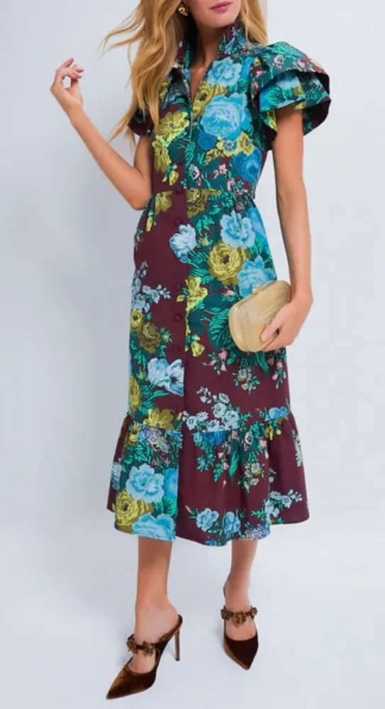 NEW NWT The Merlot Verdant Floral Alice Dress is an elevated midi that can seamlessly take you from day to night. Feminine details that we love include the short ruffle sleeves, the cinched waist seam, and the ruffle hem that adds a hint of volume. Pair with ballet flats and pearls for daytime activities, or with white heels and a clutch for date night. • Collared V-neckline • Short ruffle sleeves • Front button placket • Cinched waist seam • Side pockets • Ruffle hem • Midi length • Material: 100% Cotton • Care: Machine wash cold, do not bleach, tumble dry low, low iron Machine Washable Has Pockets Cotton Y2K, sundress, Summer, spring, striped,,, 70s, 80s, 90s, boho, bohemian, lightweight, airy, breezy, date, brunch, hollywood, celebrity, melrose, sustainable, eco-conscious, eco-friendly, fitted, a-line, fit & flare spring, retro, midi, thigh split, velvet, stretch, flattering, feminine, flirty, fitted, curvy, dual chromatic, forest, Lace, Sparkle, Neck, Frill, Romantic, Bardot, Travel, Blogger, Party, airy, bow, highwater, crop, high end, silk, runway, New Years, holidays party dress, night out, date night, ladies night, hippie, concert, hipster, music festival, fringes, embroidery, stripes, plunging neckline ,Doen, Coachella, tomatoe girl, pinup, ROMANTICISM REDEFINED. Bloggers favorite Leather, suede, free people, urban outfitters, cowboy, western, tassles
