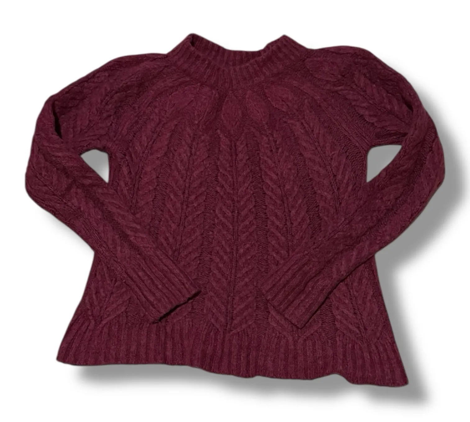 Size XS Gently Preowned I believe the color is "Merlot" The Peacock Sweater features a relaxed, loose fit, giving a fashion-forward update on the classic wool sweater. We love pairing this with boyfriend jeans and flats for a cozy evening or crisp walks. Cable knit detailing Relaxed hem Crew-neckline Ribbed details at collar and cuffs 40% wool, 30% viscose, 20% nylon, 10% cashmere Care: Hand wash separately in cold water with mild detergent, do not bleach, reshape and lay flat to dry, cool iron if necessary or dry clean Preppy, Classic , Timeless , Academia, Dark Academia, Ivy League, Country Club, Equestrian, Coastal, Nautical Dark Romantic, Vamp, Witchy , Event , Holiday, Festive, Fall, Autumn, Winter